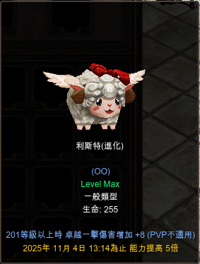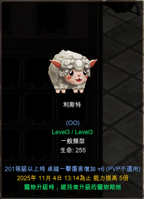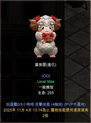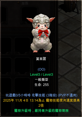 5.自2018年09月版本更新後,特殊寵物(保羅、喀戎)將不具有特效時間。