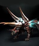 | 巨齒獸的完整體。與失敗的實驗體巨齒獸所不同,裂角狼具有均衡的外表以及堅硬的外殼,其能力也遠在巨齒獸之上。但是在製造所謂完整體的裂角狼過程當中,有無數的巨齒獸形成量產規模,這也是導致死亡沙漠泛濫無數人空生命體的契機。 |